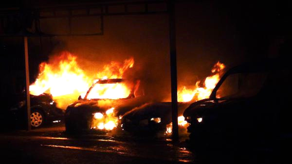 Oto Galericiler Sitesinde, Park Halindeki 8 Araç Yandı